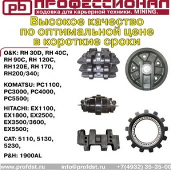 "Компания ""Профессионал"" выполняет оперативную поставку (до 3-х недель) элементов ходовой части для карьерной техники Komatsu, Hitachi, Caterpillar, O&K. Гарантия от 8000 до 12000 моточасов (в зависимости от грунтов, на которых эксплуатируется техника).